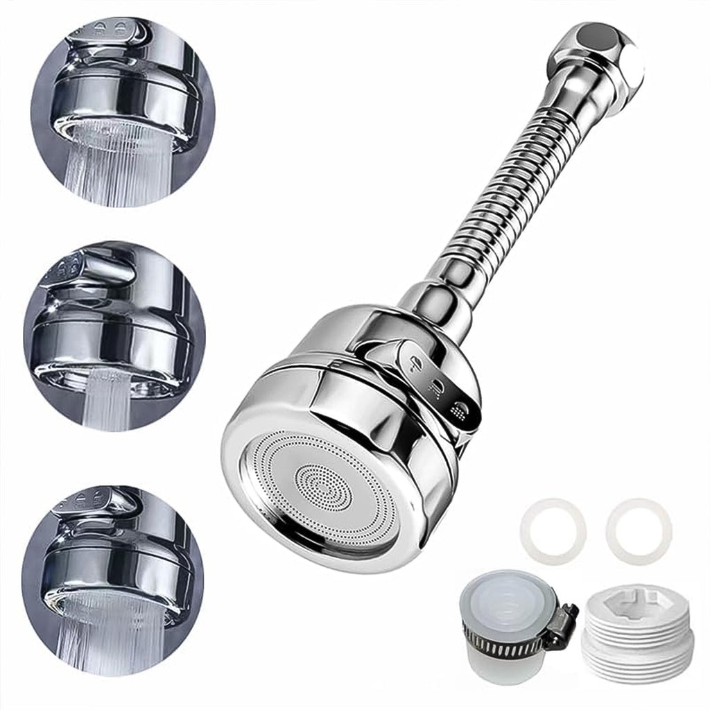 Stainless Steel Water Faucet Sprayer Head Rotating Water-Saving Sprinkler, Faucet Aerator for Easy Clean Sink Water Saving Extension 3 Modes Faucet Splash-Proof Filter Extender Sprayer for Kitchen, Bathroom (1 Pc / 7 Inch)